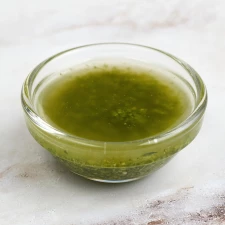 Обжаренные на гриле тигровые креветки, крем бальзамик, лимон, листья салата.
